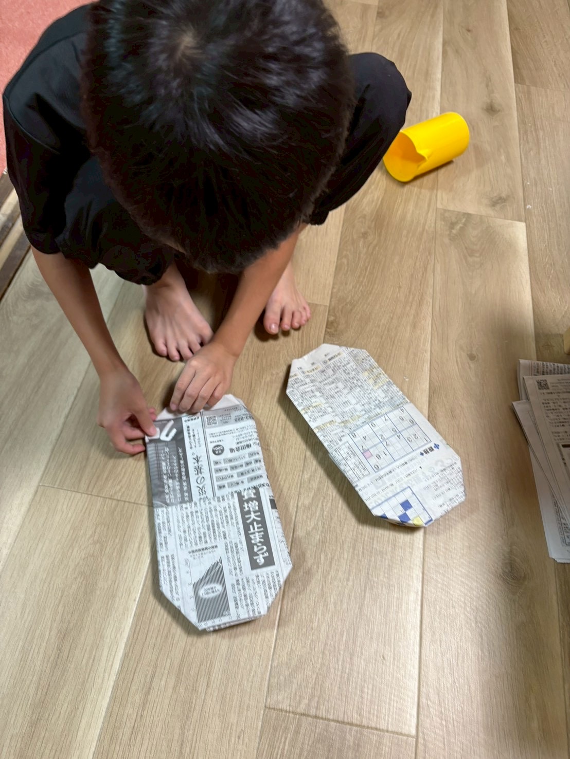 2. 新聞紙でDIY!「生きる力」を育むスリッパ作り✂️