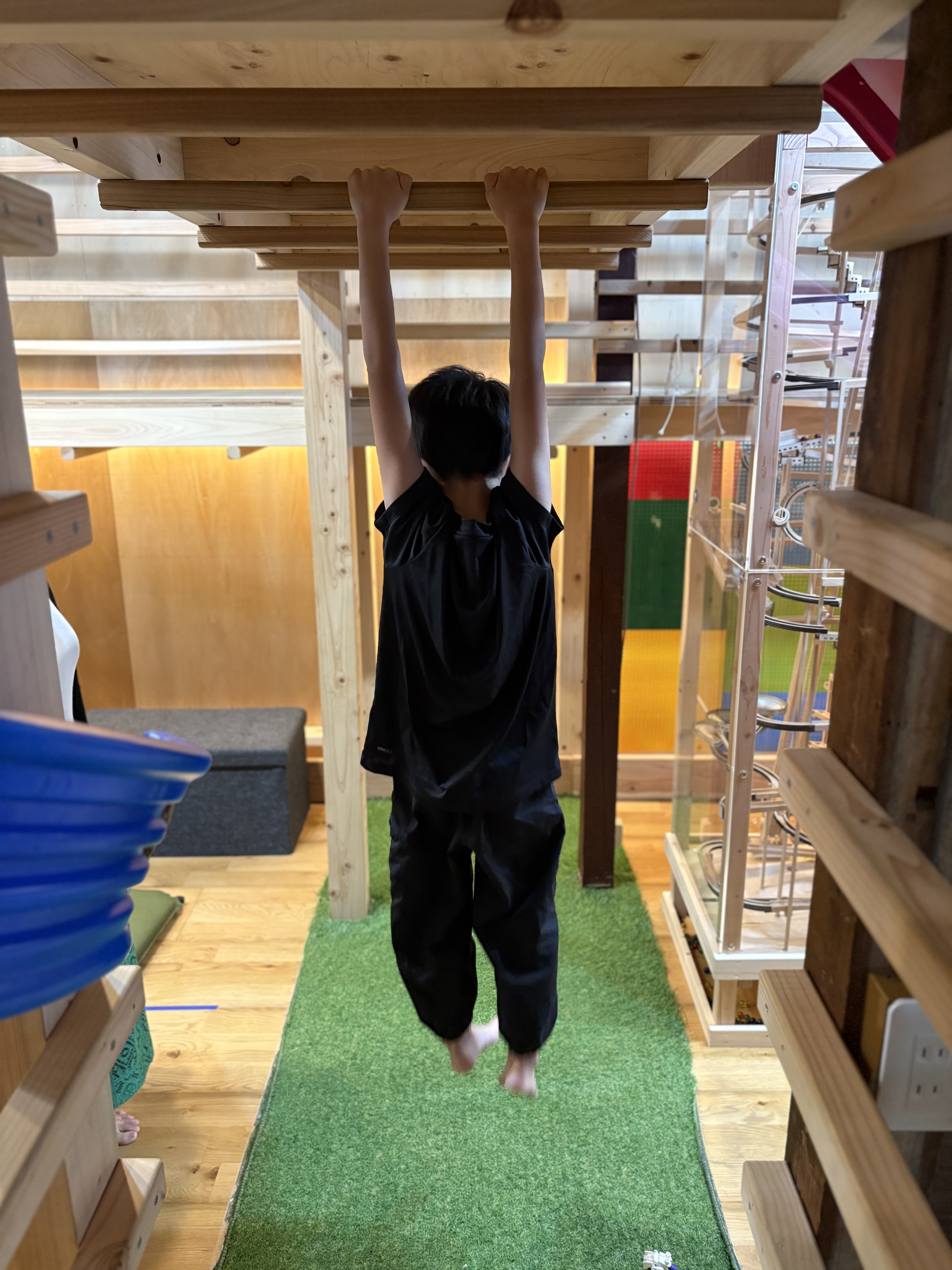 ぶら下がり、前に進む際に体が揺れる感覚は、脳のバランス感覚を司る前庭覚を刺激し、統合を促します。これが、ふらつきの軽減や、安定した平衡感覚へと繋がります。
